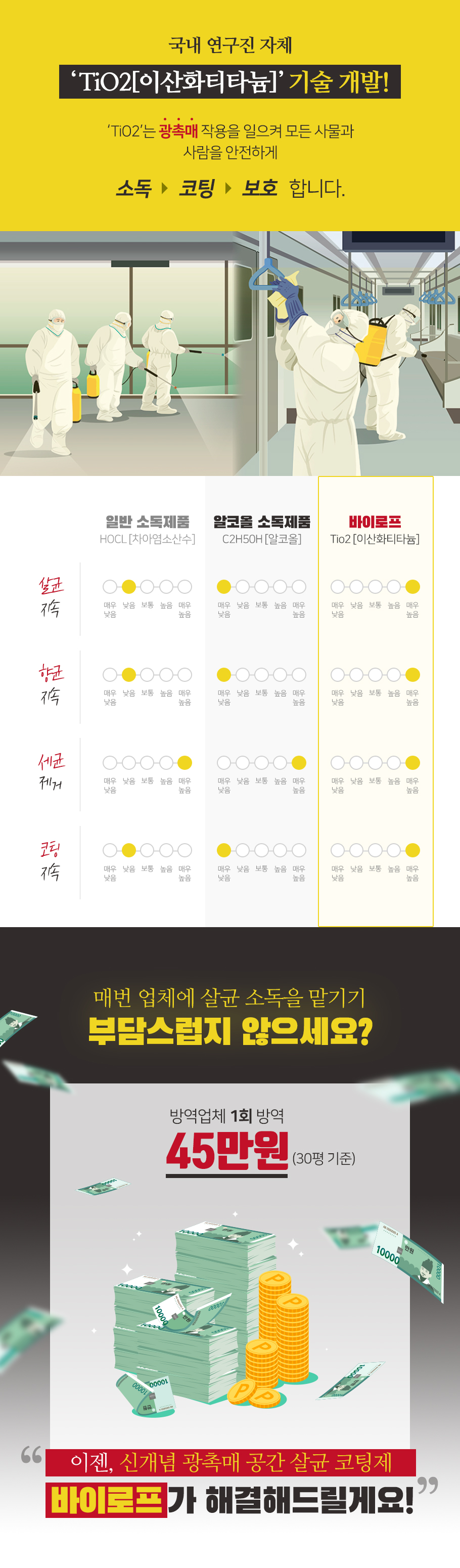 TiO2 기술 개발로 광촉매 작용을 통해 모든 사물과 사람을 안전하게 소독 · 코팅 · 보호합니다