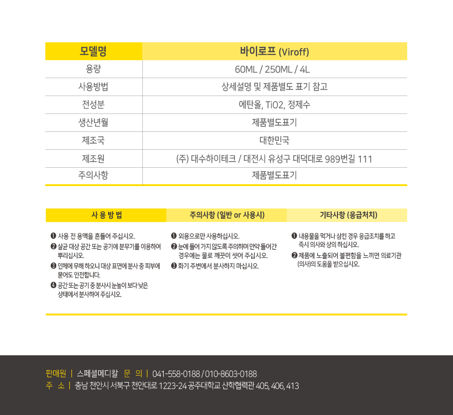 우편번호 : 31075 주소 : 충청남도 천안시 서북구 2공단 2로 95 천안테크노타운 204 (차암동 5-2) 스페셜메디칼 대표 : 김정욱 대표번호 : 041-558-0188 사업자등록번호 : 506-39-00264